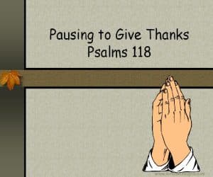 pausing-to-give-thanks Click on the above link to download the slideshow “Pausing To Give Thanks†(536 KB) Preview:- Here is our plan of attack for the day. First we will read Psalms 118. Then a meditation on thanksgiving . We will then examine the Biblical background of thanksgiving. Finally, will conclude with some categories that we … Read more
