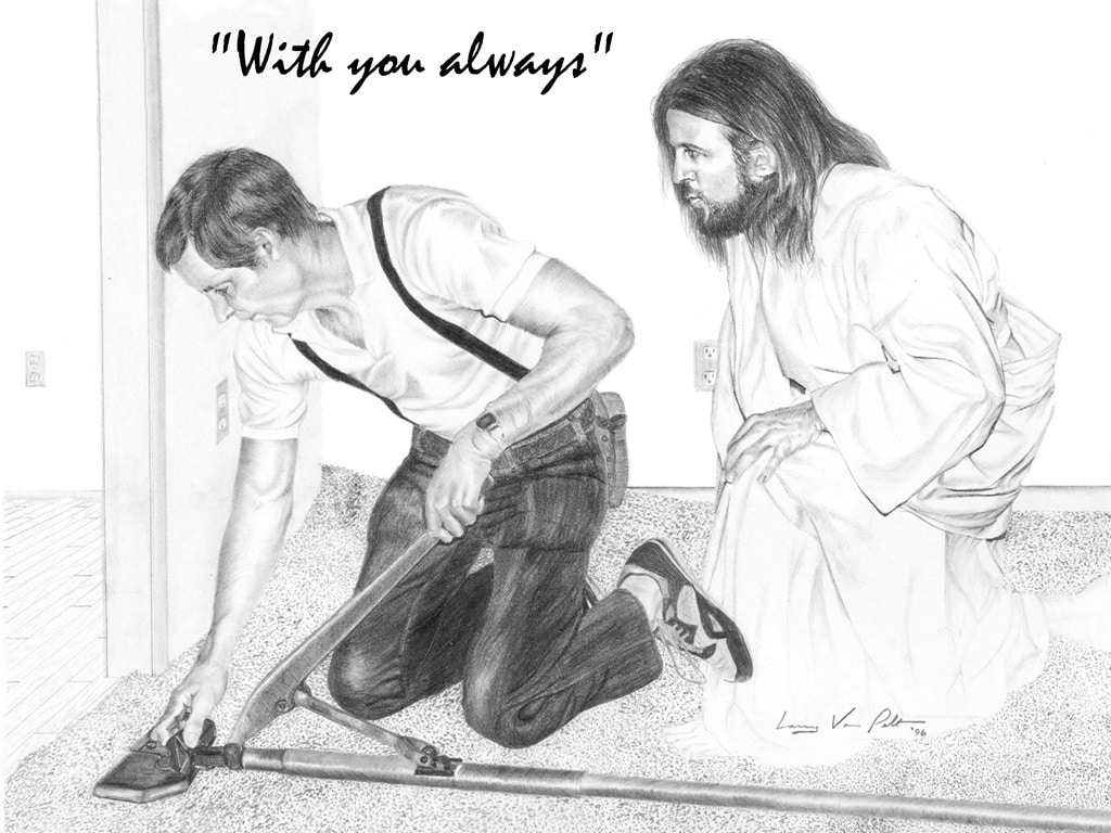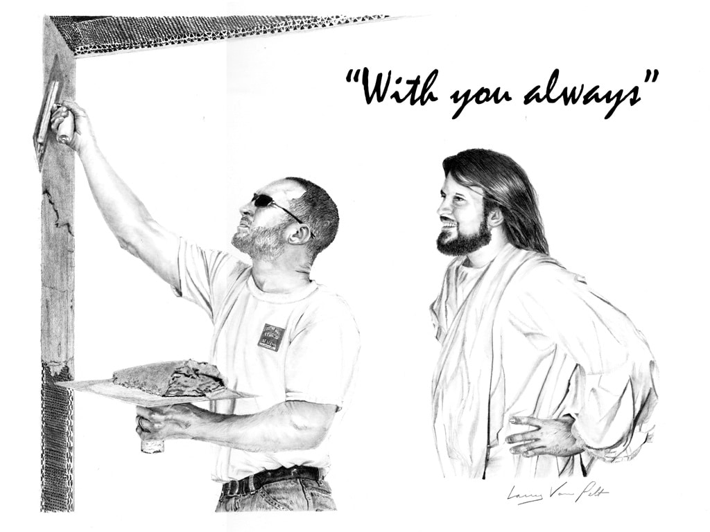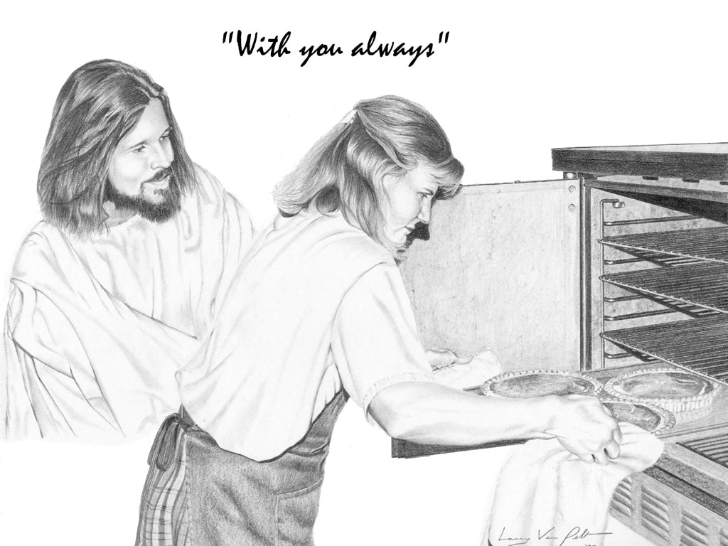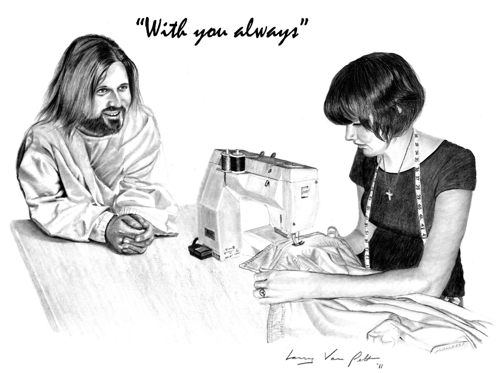 Jesus is always with us, wherever we are, whatever we do. The 36 pencil drawings given above are from the famous artist Mr. Larry Van Pelt. These pictures help Christians everywhere visualize the reality of Jesus’ presence in their lives at all times, particularly during those everyday tasks where we spend most of our time.