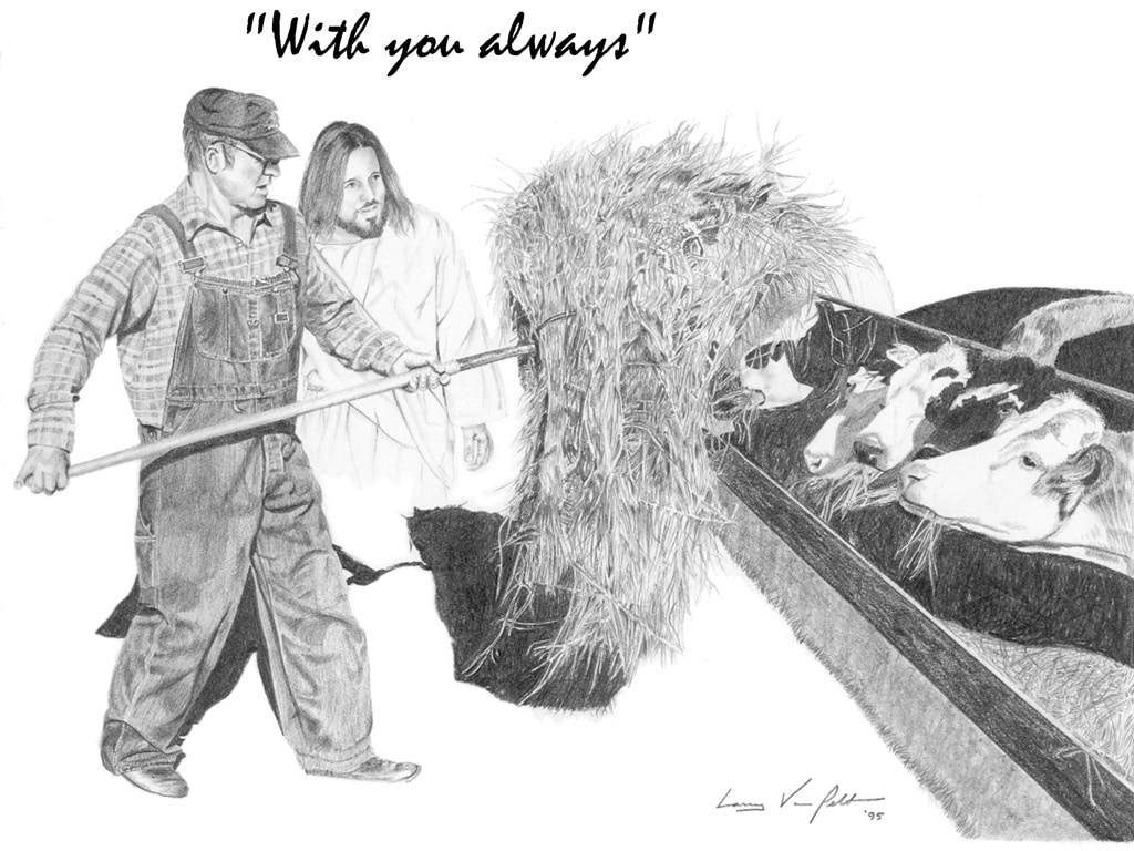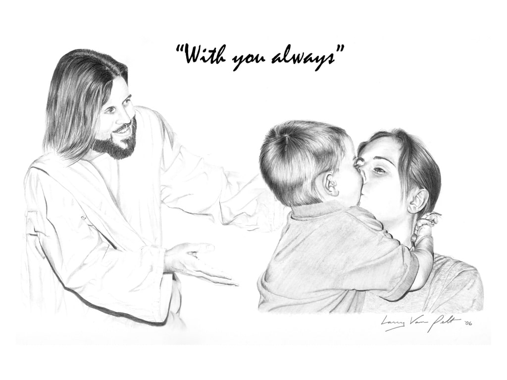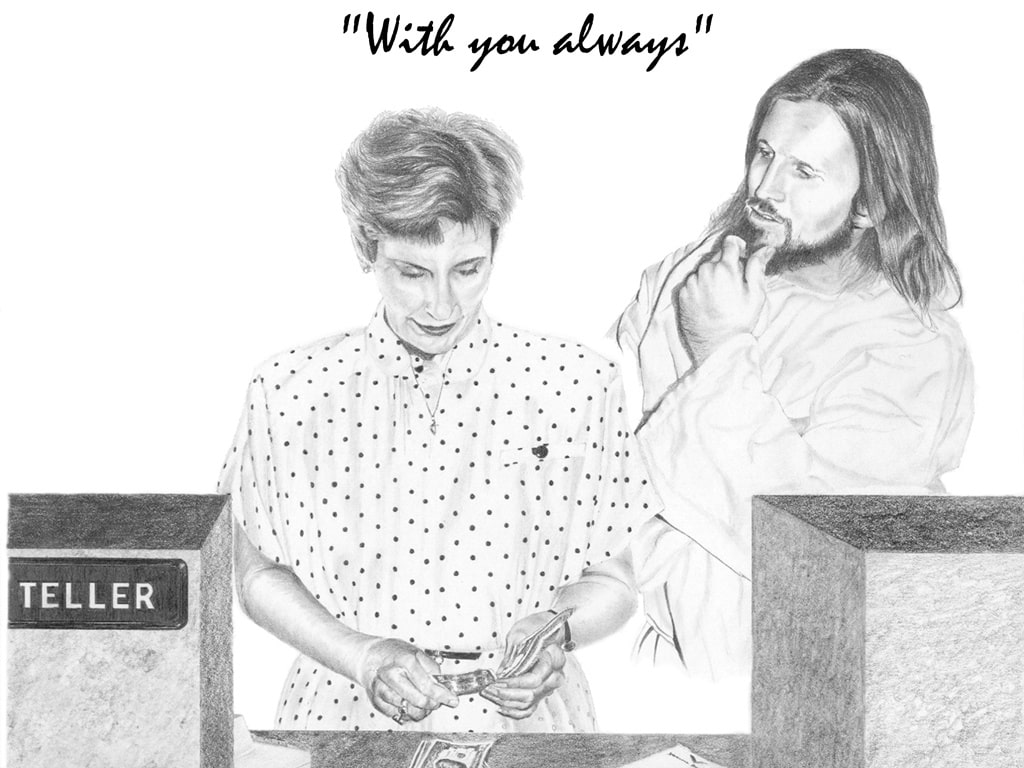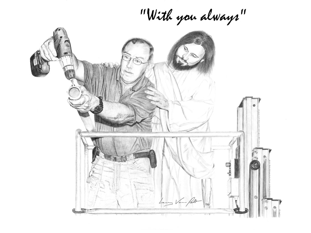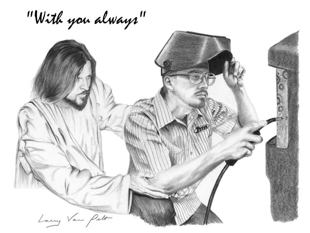 Jesus is always with us, wherever we are, whatever we do. The 36 pencil drawings given above are from the famous artist Mr. Larry Van Pelt. These pictures help Christians everywhere visualize the reality of Jesus’ presence in their lives at all times, particularly during those everyday tasks where we spend most of our time.