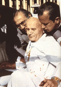 On May 13, 1981: A young Turk, Mehmet Alì Agca, shot the pope in the abdomen and hand while he circles St. Peter’s Square. The pope is hospitalized for 22 days.