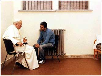 Pope John Paul II met with his would-be assassin, Turkish terrorist Mehmet Ali Agca, in Agca’s prison cell in Rome. Italy’s President Carlo Azeglio Ciampi pardoned Mehmet Ali Agca in 2000 and Italian Justice Minister Piero Fassino then authorized Agca’s extradition to Turkey to serve a prison sentence for an unrelated killing.