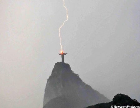 The statue was struck by lightning during a violent electrical storm on Sunday, February 10, 2008. (7th thumbnail in the above gallery). The storm caused havoc in Rio, felling trees in several neighbourhoods, but the statue was left unscathed.